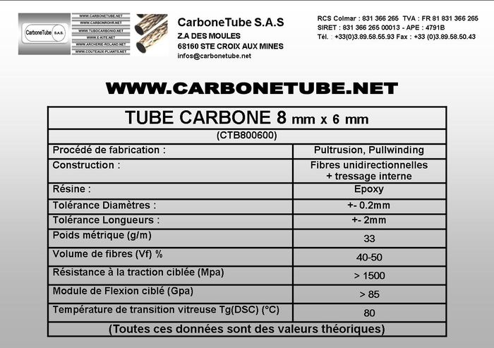 Construction : Drapage (Pre-Preg) , résine époxy.
