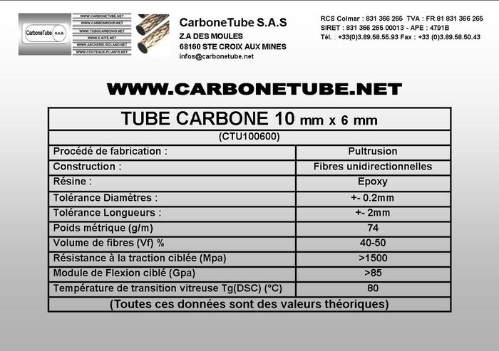 Construction : Pultrusion, Fibre unidirectionnelle, résine époxy.